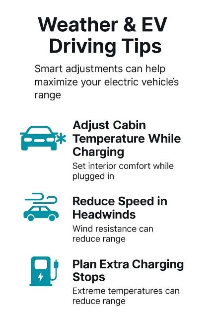 Weather impacts EV range—plan ahead for cold, wind, and storms.